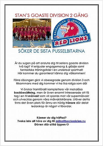 På utespelarsidan är vi i nuläget anfallstunga & därför önskar vi stabilisera laget med några goa backar till.